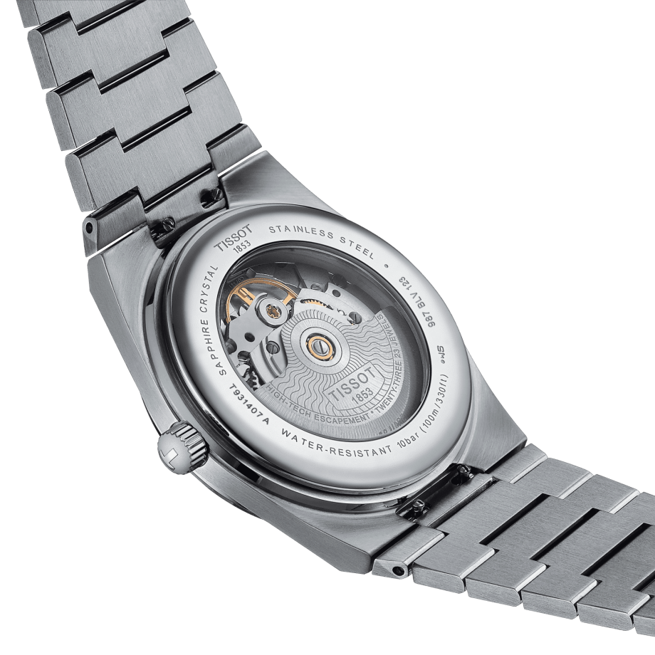 The latest expansion of the line, the PRX Powermatic 80 Steel & 18K Gold, comes with the addition of an 18K rose gold bezel that frames a brown or blue dial with color-coordinated indexes and hands. The case measuring a contemporary 40.0 by 10.9mm is made of stainless steel 316L and integrates a metal bracelet.